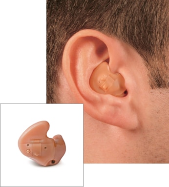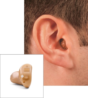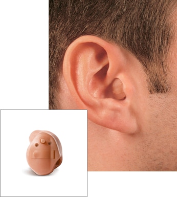 The entire hearing aid sits inside the ear canal, making it practically invisible.